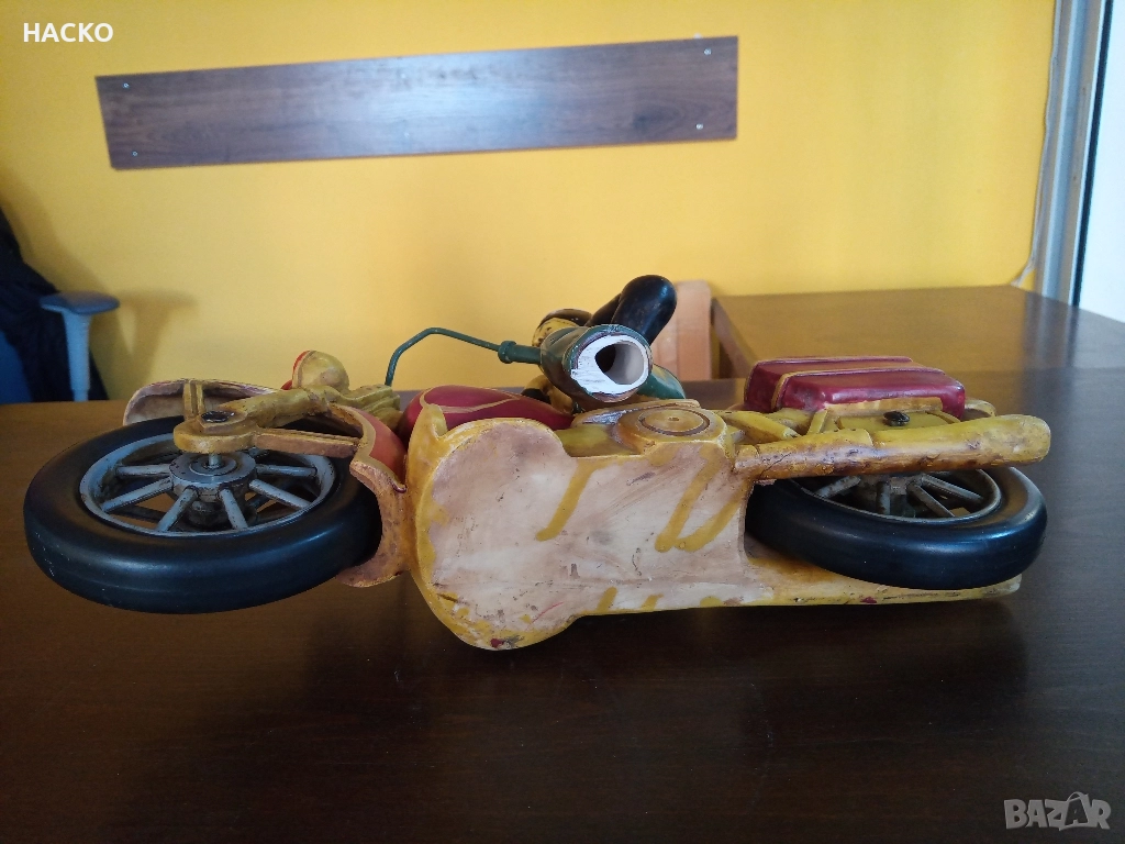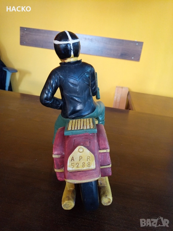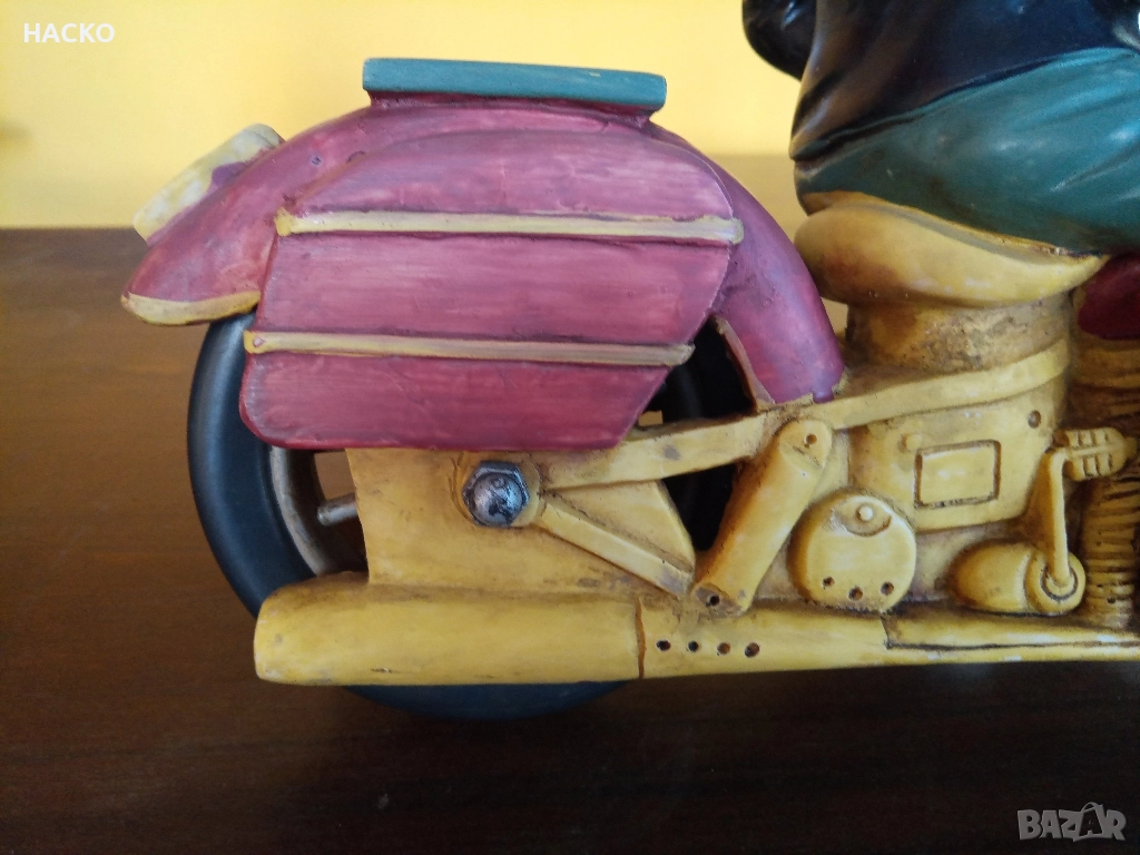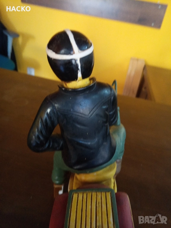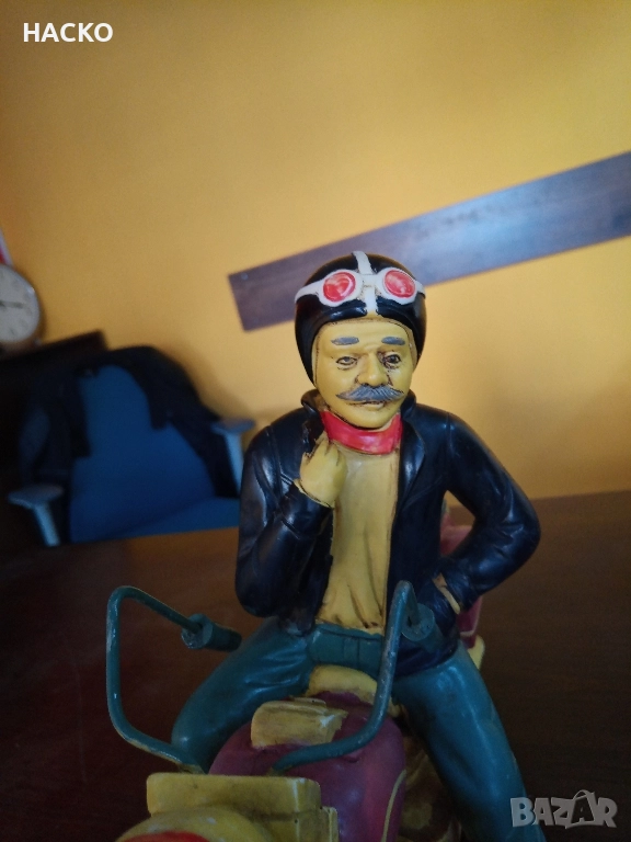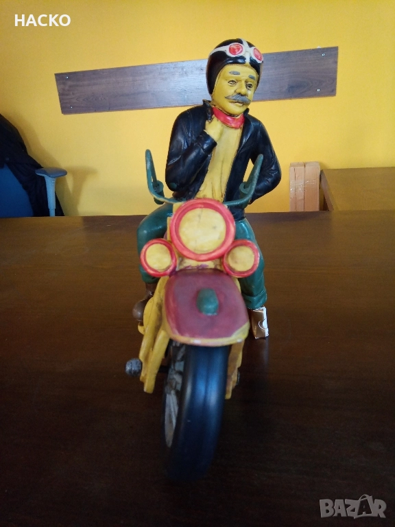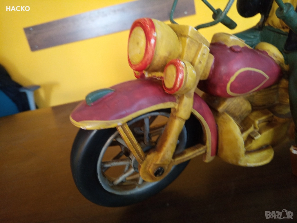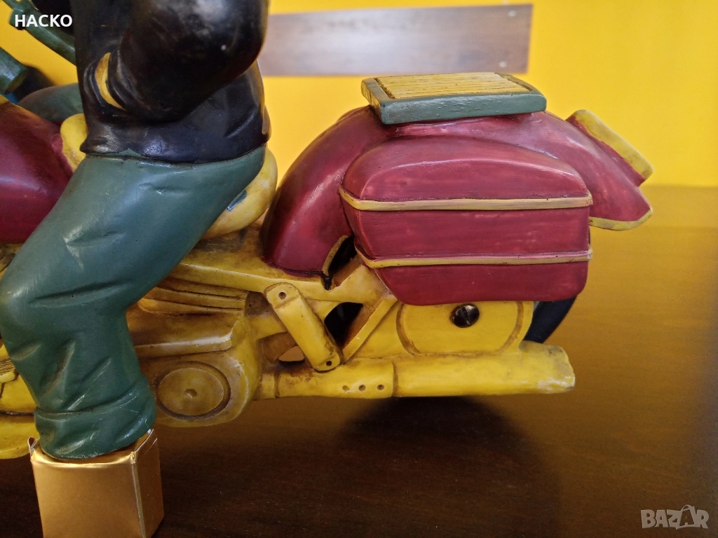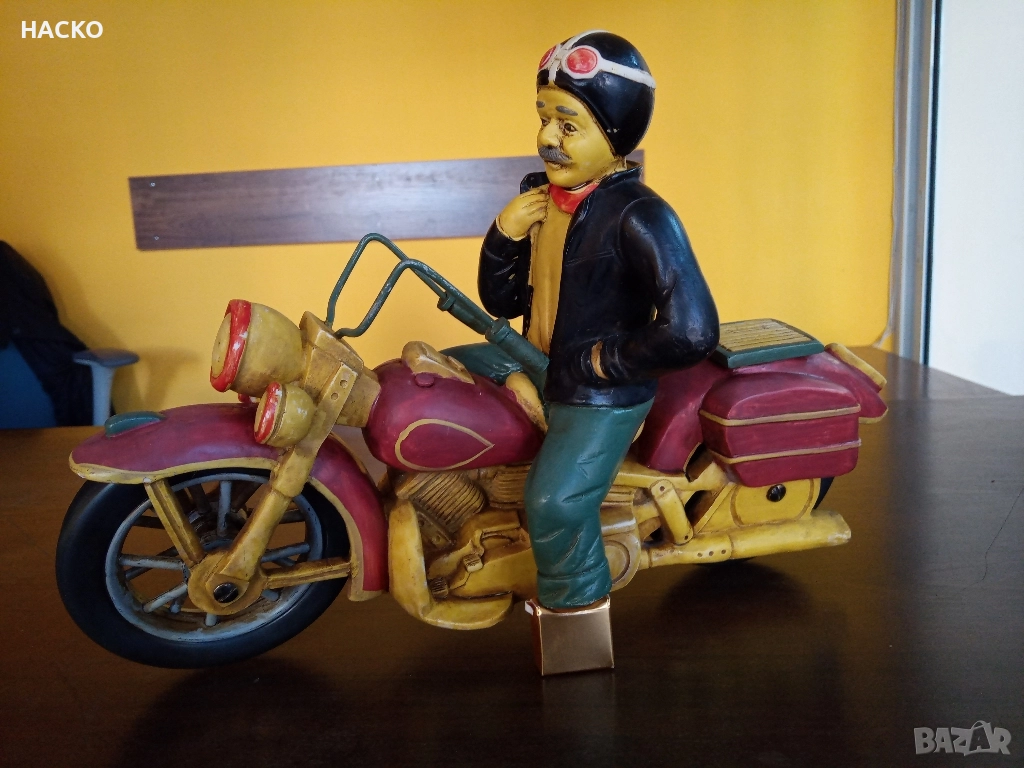 Стара Масивна СТАТУЕТКА РЪЧНО ИЗРАБОТЕНА на Моторист с Мотор Harley Davidson ВНОС от Англия → Обява 52457105