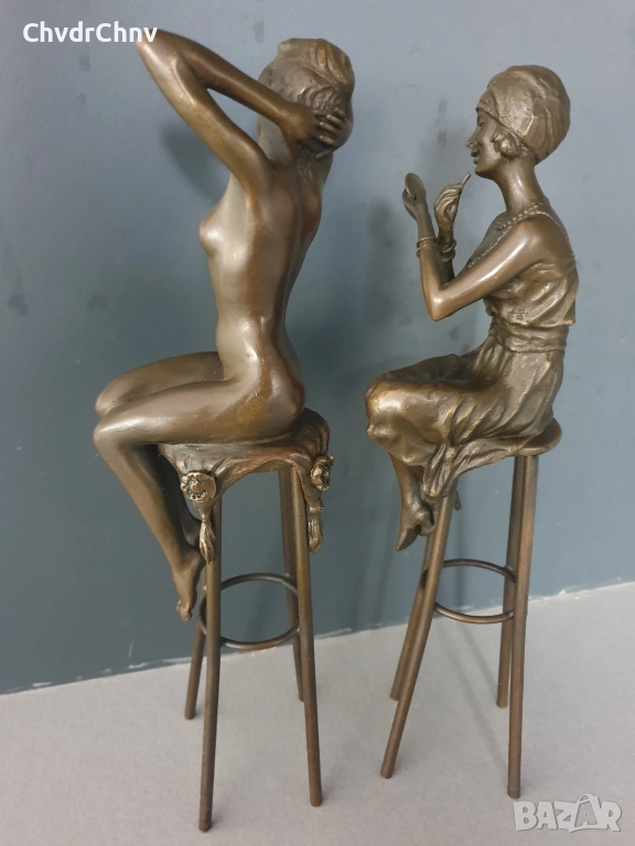 27см-1кг Chiparus статуетка/еротика/френска бронзова скулптура/малка фигура на гола жена на стол