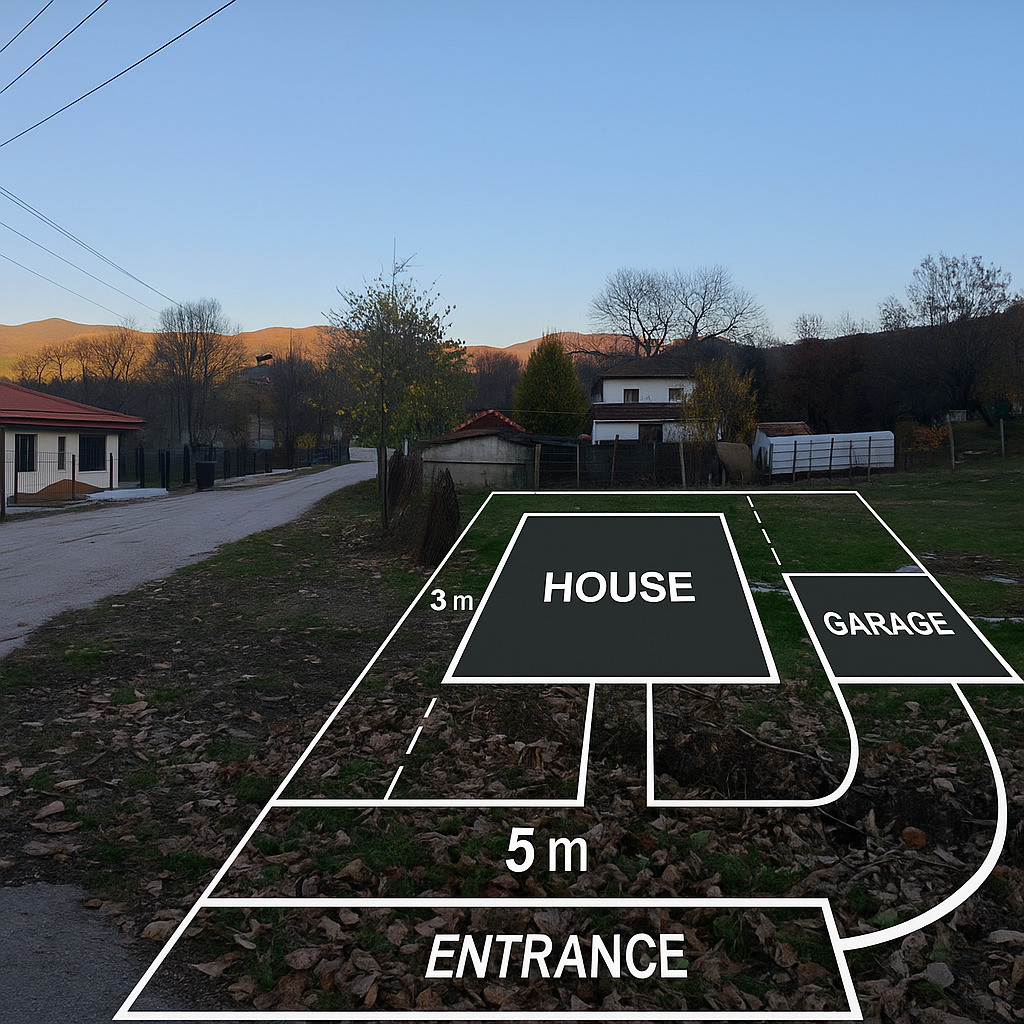 Имотът представлява урегулиран парцел (УПИ), намиращ се на асфалтирана улица с лесен достъп през цялата година. Мястото е равно и открито, с широка панорама към околните хълмове. Парцелът граничи с ниска жилищна застроена среда, което осигурява спокойствие, но също така и наличие на инфраструктура около него.