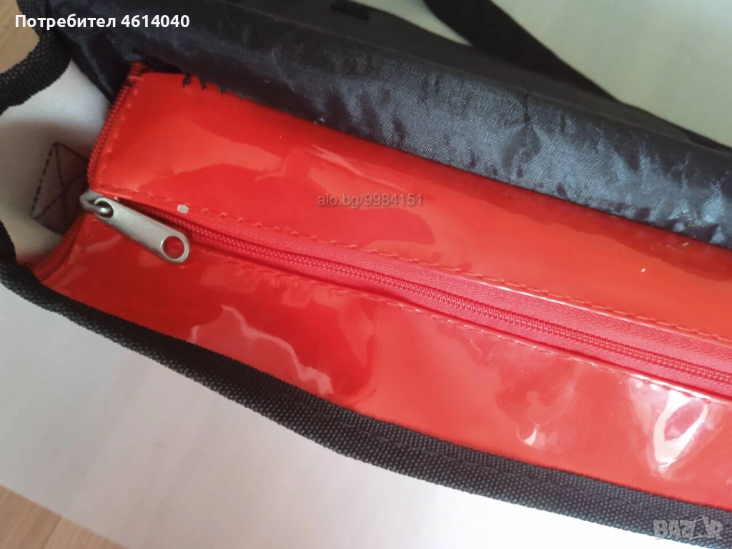 Вътре има едното голямо отделение с малки джоба (на джобата не работи ципът).