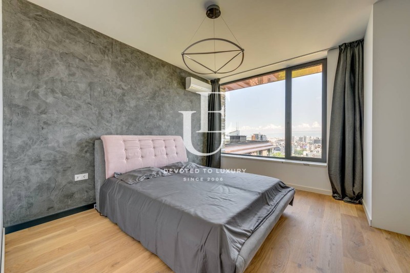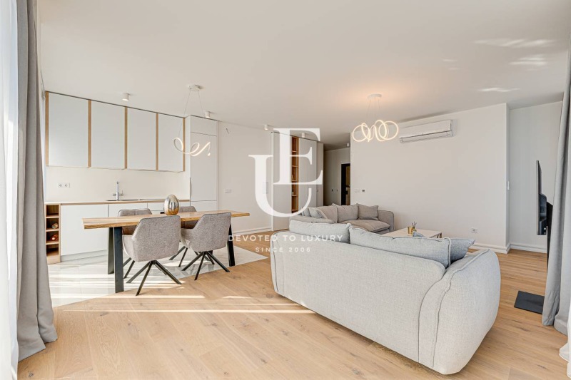 Този прекрасен имот предлага жилищна площ от 99 квадратни метра, разположен в луксозна сграда с акт 16. Апартаментът е разположен на 12 етаж, което октрива впечатляващи гледки. Имотът е завършен с висок клас материали, естествен паркет, каменни мраморни площи, баня с вана, MDF кухня изпълнена по дизайнерски проект, MDF врати, изградено подово отопление, газово котле и климатици във всяка стая.