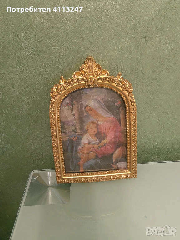 Ръчно изработена икона – декупаж с красива златиста рамка