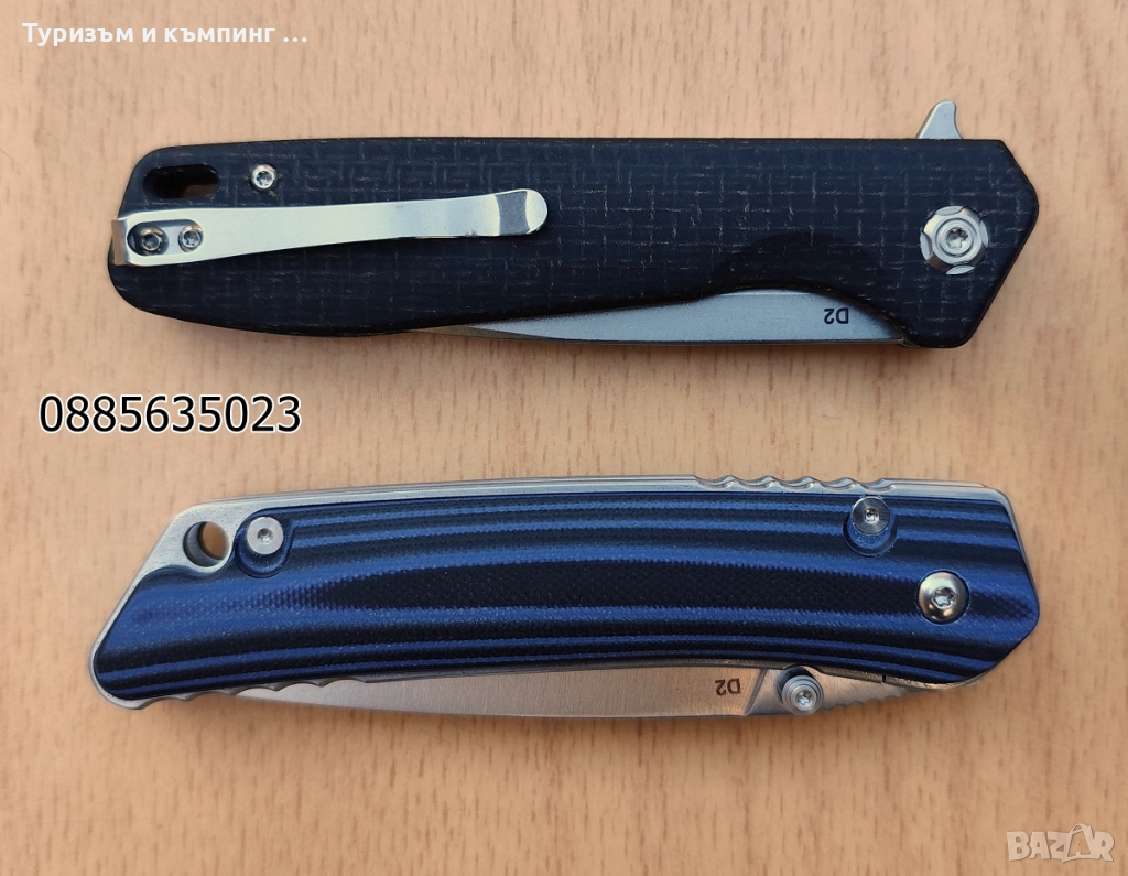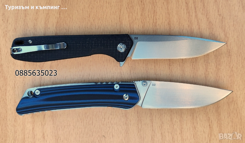 ножчета с много добро качество и изработка и материал на острието D2, всеки с цена 40 лв.