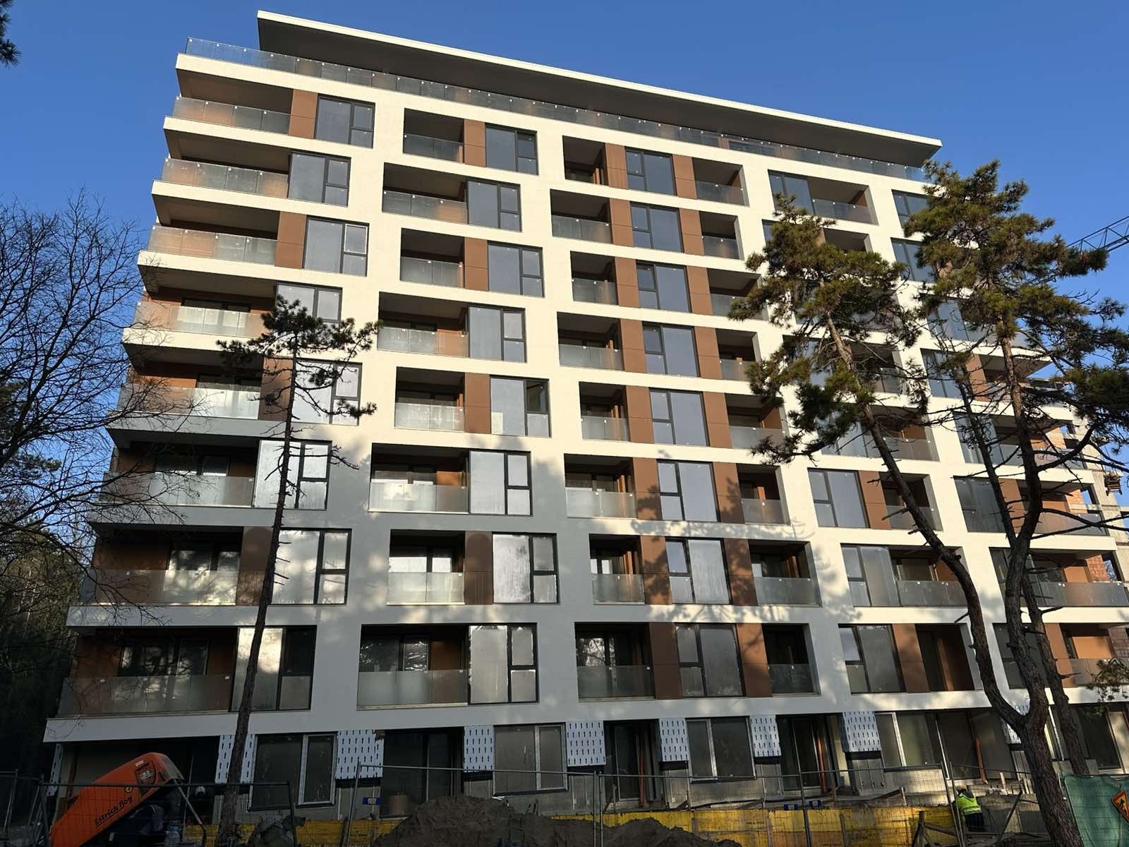 Фасада: Високоефективна топлоизолационна система. Висококачествена силиконова мазилка, устойчива на атмосферни влияния, водоотблъскваща, с висока паропропускливост. Дограма 7-камерна, троен стъклопакет с две специални стъкла (четири сезона + бяло + К стъкло) с газ аргон. Стъклени и метални парапети.