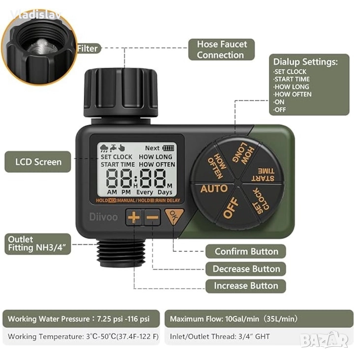 Контролер за напояване Diivoo WT-06, автоматичен/ръчен режим, снимка 1 - Напояване - 52459042 Контролер за напояване Diivoo WT-06, автоматичен/ръчен режим, снимка 2 - Напояване - 52459042 Контролер за напояване Diivoo WT-06, автоматичен/ръчен режим, снимка 3 - Напояване - 52459042 Контролер за напояване Diivoo WT-06, автоматичен/ръчен режим, снимка 4 - Напояване - 52459042 Контролер за напояване Diivoo WT-06, автоматичен/ръчен режим, снимка 5 - Напояване - 52459042 1/5