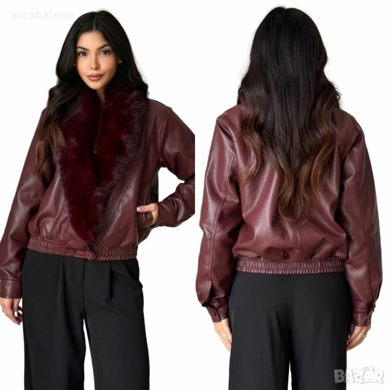 Дамско яке от изкуствена кожа с яка от изкуствена кожа, 5цвята