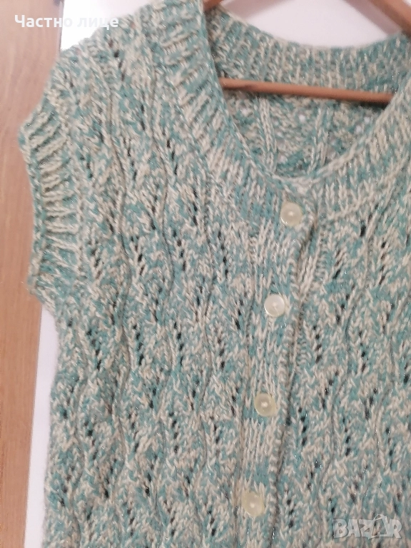 Нов дамски елек, ръчно плетиво, ГО 47 см, дължина 80 см.