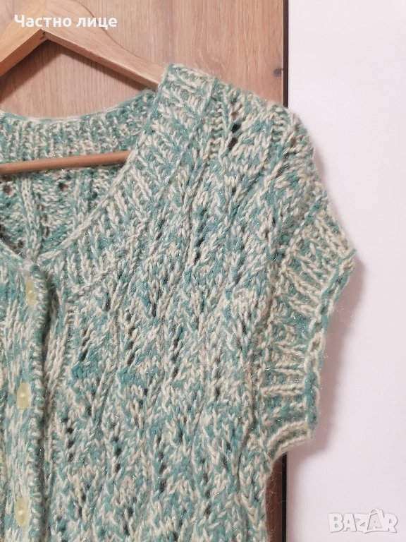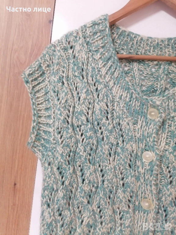 Нов дамски елек, ръчно плетиво, ГО 47 см, дължина 80 см. → Обява 52459453