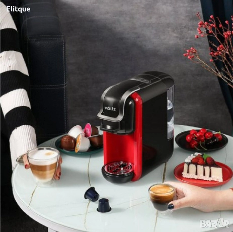 Кафемашина 8в1 "Поддържа всички капусли" Voltz 19 бара/ 1650W, черно с червено, 2 ГОДИНИ ГАРАНЦИЯ