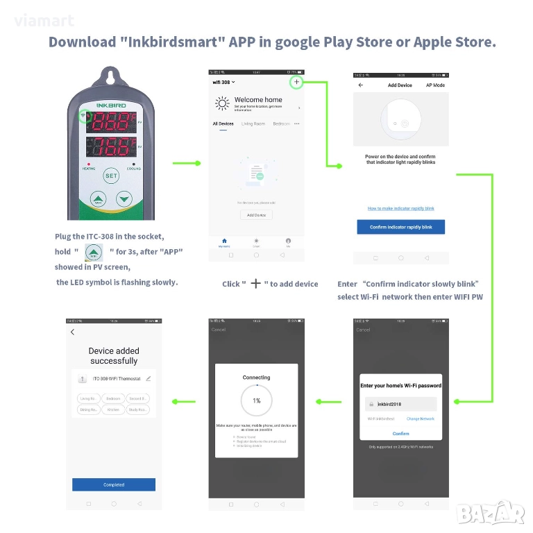 • Wi-Fi управление чрез InkbirdSmart (2.4 GHz)