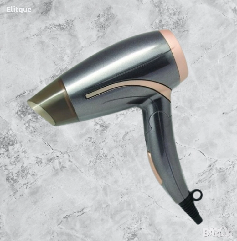 Сешоар със сгъваема дръжка. Бутон за избор на 2 степени на скоростта и температурата. Концентратор в комплекта. Халка за закачване. Махащ се въздушен филтър. Висококачествен електромотор. Защита против прегряване. Захранване: 220-240V, 50/60Hz, 1400W; Цвят: Сив, черен; Гаранция: 24 месеца.