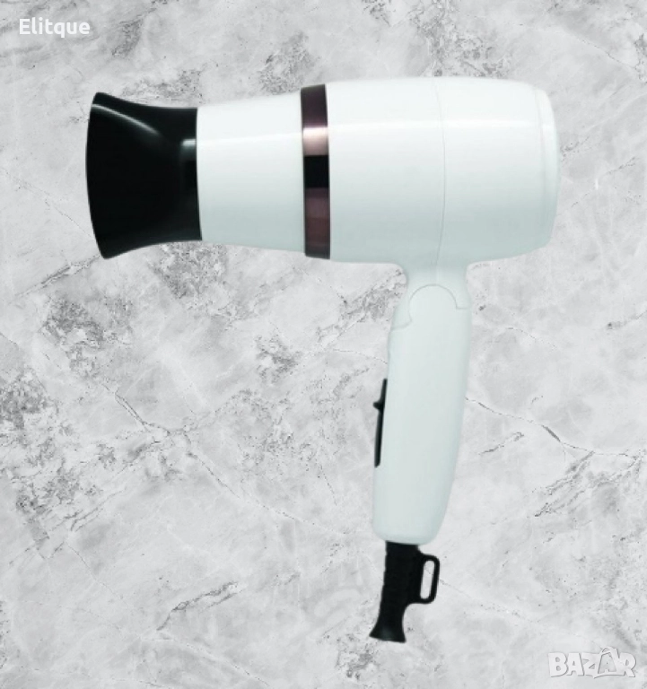 СТЕПЕНИ НА МОЩНОСТТА; ИЗКЛ./ СТУДЕН ВЪЗДУХ/ НИСКА ТЕМПЕРЕТУРА/ ВИСОКА ТЕМПЕРАТУРА КОНЦЕНТРАТОР В КОМПЛЕКТА ХАЛКА ЗА ОКАЧВАНЕ ЕРГОНОМИЧНА, СГЪВАЕМА ДРЪЖКА ВИСОКОПРОИЗВОДИТЕЛЕН DC ЕЛ. ДВИГАТЕЛ ЗАЩИТАТА ПРОТИВ ПРЕГРЯВАНЕ ЗАХРАНВАНЕ: 230V~, 50/60Hz, 1600W; Цвят: Черен, бял; Гаранция: 24 месеца.