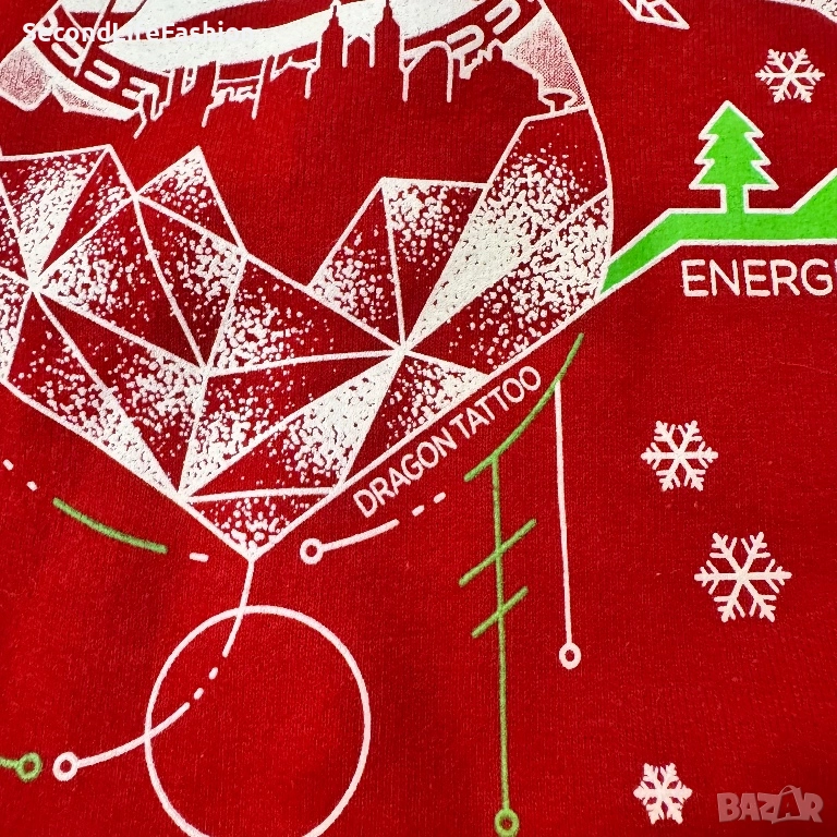 Винтидж суитшърт PSV Eindhoven с коледна тематика, татуировка на дракон, размер S, червен, 90-те години.