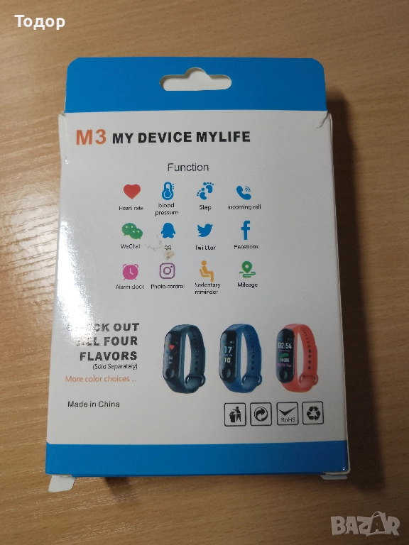 Проверяване на съобщения (SMS, WeChat, QQ, Facebook, WhatsAPP) ,проверяване на данни и др. Часовник, смарт будилник, опция за намиране на гривната, управление на камерата.