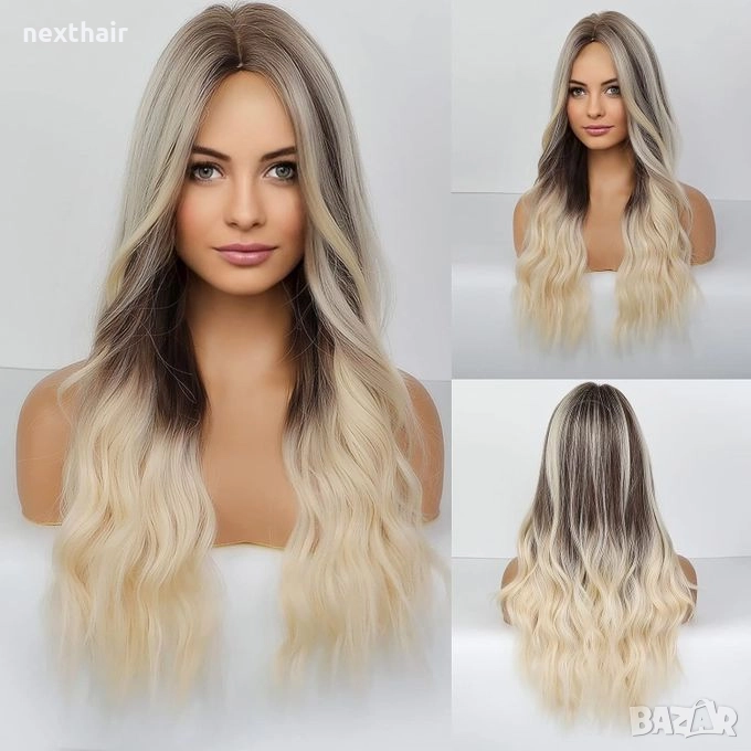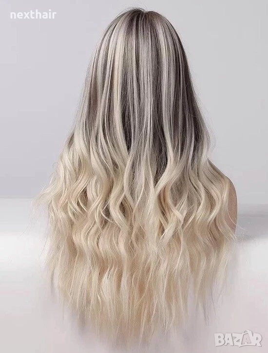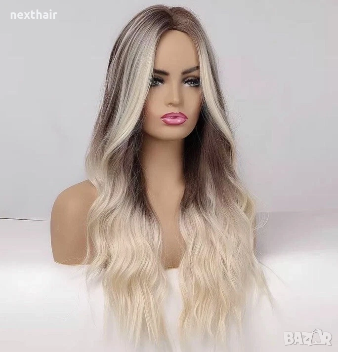 Красива кафява вълнообразна перука с руси кичури и краища балеаж → Обява 52460217