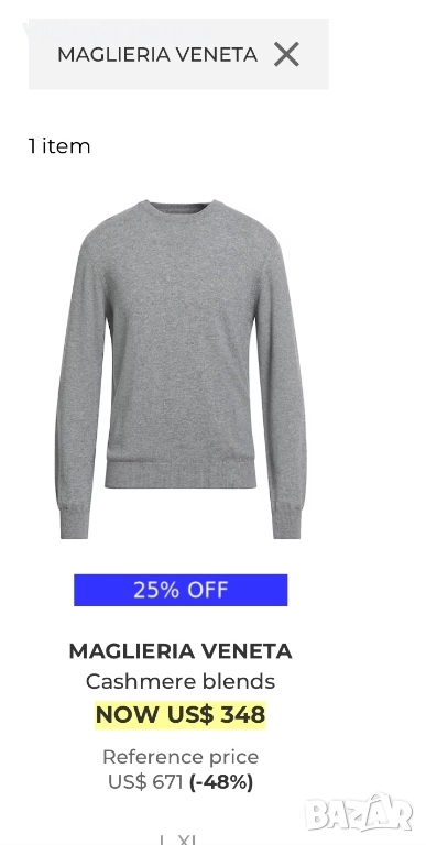 Разпознаваемият оригинал на M.V.- плетката е умишлено обърната с опакото навън - запазена марка на работилницата, дава му модерен , леко суров и супер минималистичен вид, който в момента е навсякъде по Милано и Париж. Отвън на гърба е пришит оригиналния платнен етикет с логото и черната закачалка - дизайнерско решение. Рамо - 50см, ГО - 57см, дължина - 71см, ръкав - 63см.