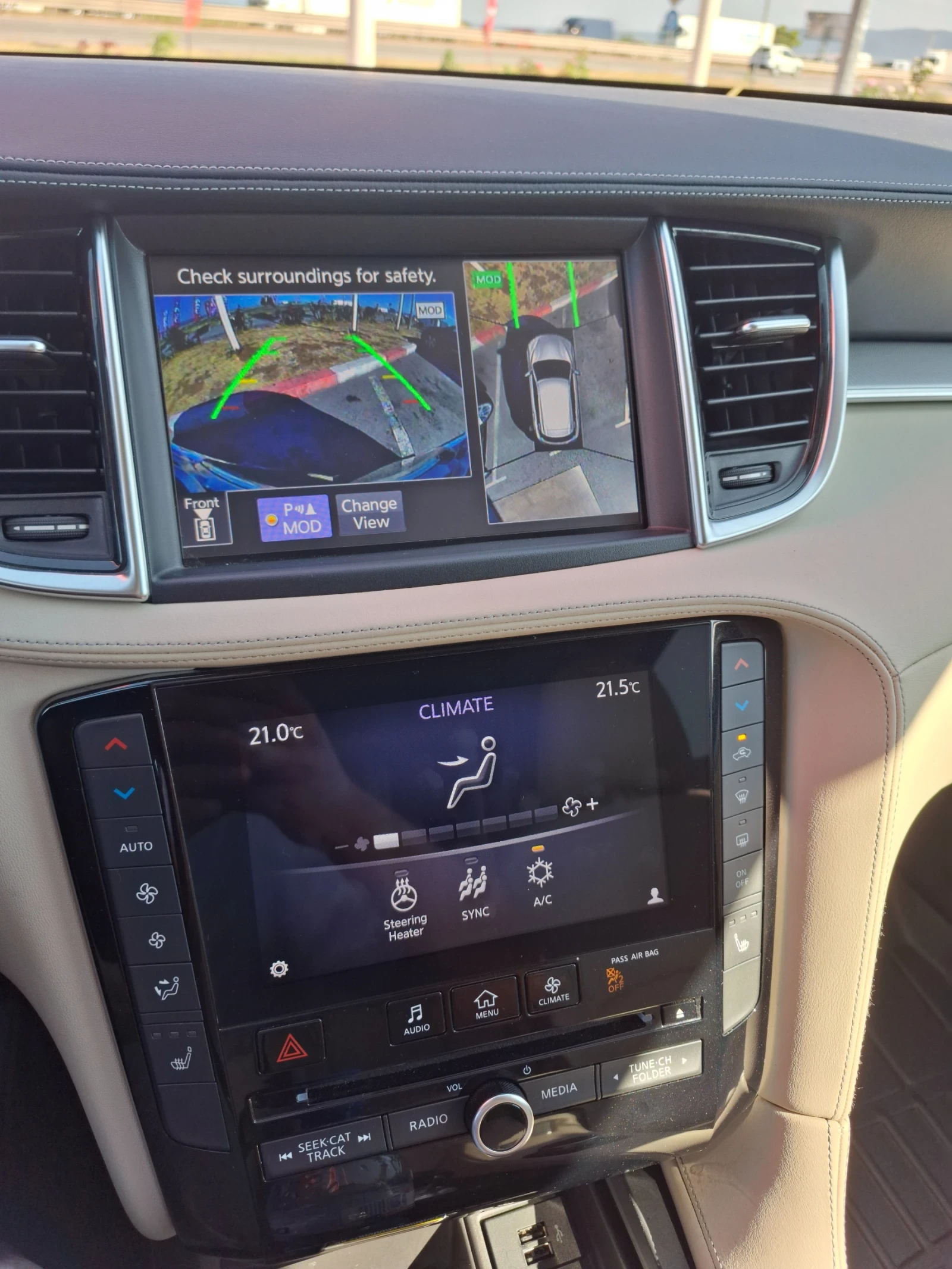 Луксозен, просторен и изключително динамичен японски SUV от премиум гамата на Инфинити- 6. 5 секунди до 100 км/ч. Огромен багажник за класа си. Реални км. Безупречно техническо и визуално състояние за годините си. Автомобилът е внесен от Канада през август 2024г и тогава е извършено пълно сервизно обслужване. Първи собственик в България. Богато оборудване за модела, като някои от екстрите са както следва: - Автоматична система за ранно предупреждение от евентуален сблъсък. В такива случаи автомобилът намаля скоростта или спира, напълно автономно - Цвят на купето Бяла перла с нюанс слонова кост - Рядко срещан за модела салон от естествена кожа в цвят шампанско, двуцветен, разширен пакет - Тризонов климатроник със система за рециркулация на въздуха в купето - Ел. Стъкла, Ел. Огледала с отопление, накланяне и сензор за мъртва зона, Ел. Седалки с подгряване, надуване, регулиране и памет - Eл. регулируем волан с памет и отопление - Електрическа ръчна спирачка с функция Auto hold - Детайлизирани камери 360 градуса за преден и заден ход , втч. тип птичи поглед, с предни и задни парктроници и звукова сигнализация - Премиум аудио система - Сензори за дъжд - Подгряване на предно стъкло и волана - Различни режими на каране, превключване на скоростите от перата на волана, автоматична скоростна кутия с осем предавки - AUX/USB/Wireless/Bluetooth - Тонирани стъкла - Електрически панорамен покрив - Безключово отваряне - Безключово стартиране на двигателя, втч. от дистанция - Функция посрещане и изпращане на фаровете - FULL LED фарове, LED халогени и LED стопове, LED мигачи, LED вътрешно осветление - 4 по 4 перманентно задвижване Пълно автокаско, платена ГО за 1 година напред. ГТП до август 2026г. 2 ключа. Чисто нови зимни гуми Kumho, монтирани на 09. 11. 2025. В цената на автомобила е включен втори чифт гуми, но летни. Коментар на цената, в рамките на разумното, е възможен само след оглед. Възможност за преглед в сервиз по ваш избор, единствено в рамките на София.