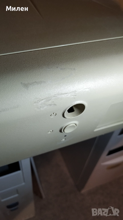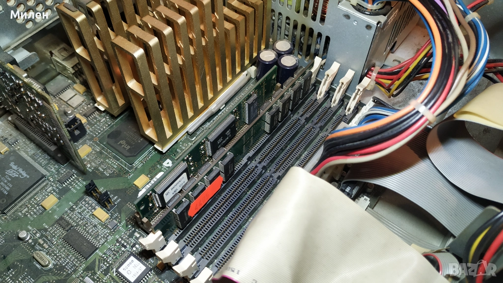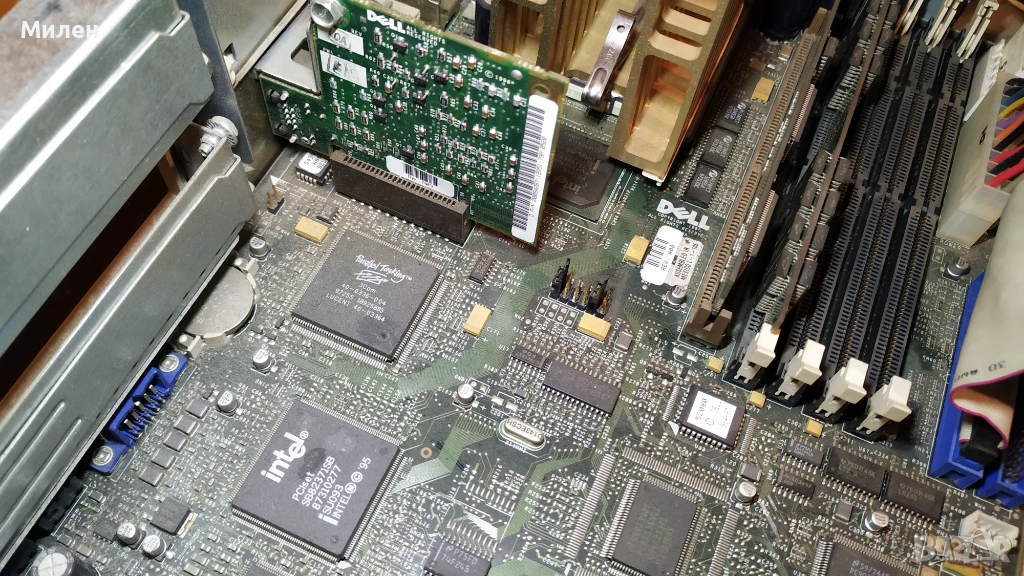 Ретро компютър Делл GXi Pentium 1 120MHz, 2.1GB харддиск, 32MB RAM, 2MB вградено видео S3 Trio 64, вградени звукова карта и LAN карта, която не съм сигурен, че работи. Инсталиран Windows 98. Тестван и работи без забележки, има такива само по кутията - пожълтяла с отпечатана стойка от монитор, липсваща капачка на Power бутона, пукната долу вдясно и две отчупени парченца - виждат се на снимките. Предпочитам лично предаване.