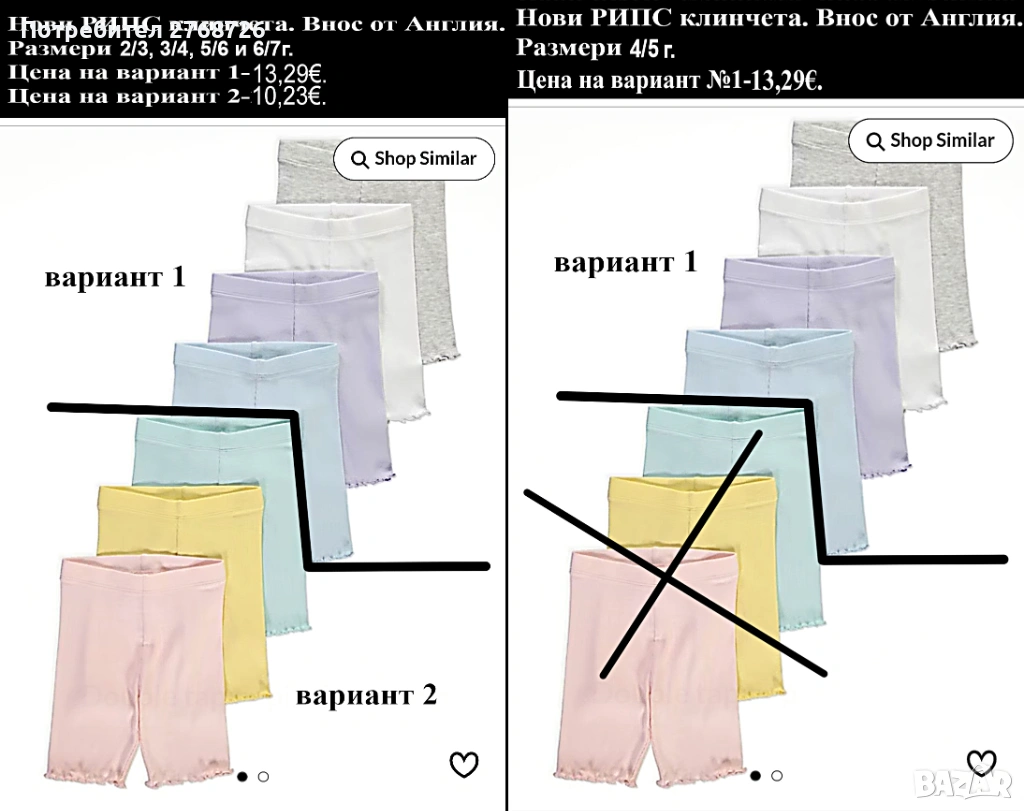 Цени и размери в горнатачаст на снимките.