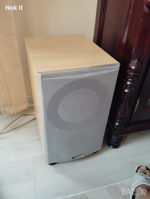 2 бр. Субвуфери Canton AS 85 SC Power handling: 100 / 150 watts (nominal / music power handling). Frequency response: 25 - 200 Hz Crossover frequency: 55 - 200 Hz (adjustable) Плюс всички кабели, истински, стойки за предните и стойки за стена за задните.