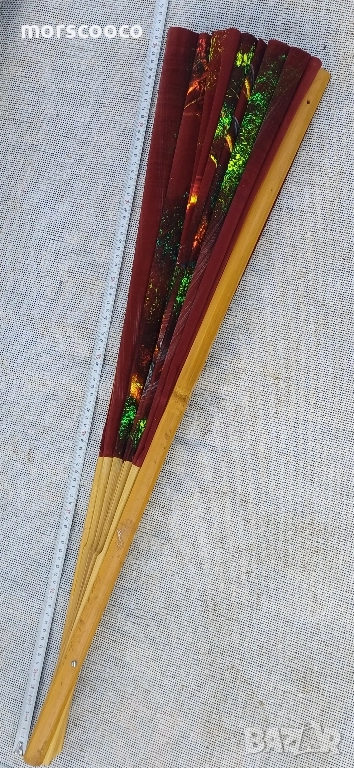 Голямо старо ръчно рисувано ветрило за стена масло на платно
