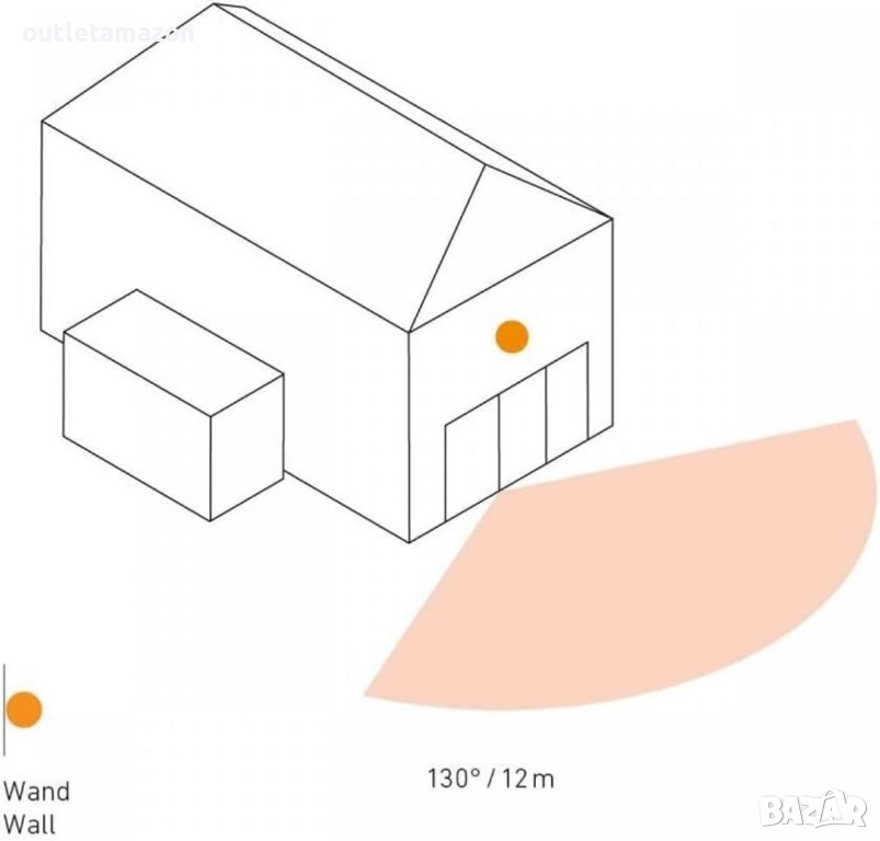 Ъгъл на покритие на сензора: 130 °