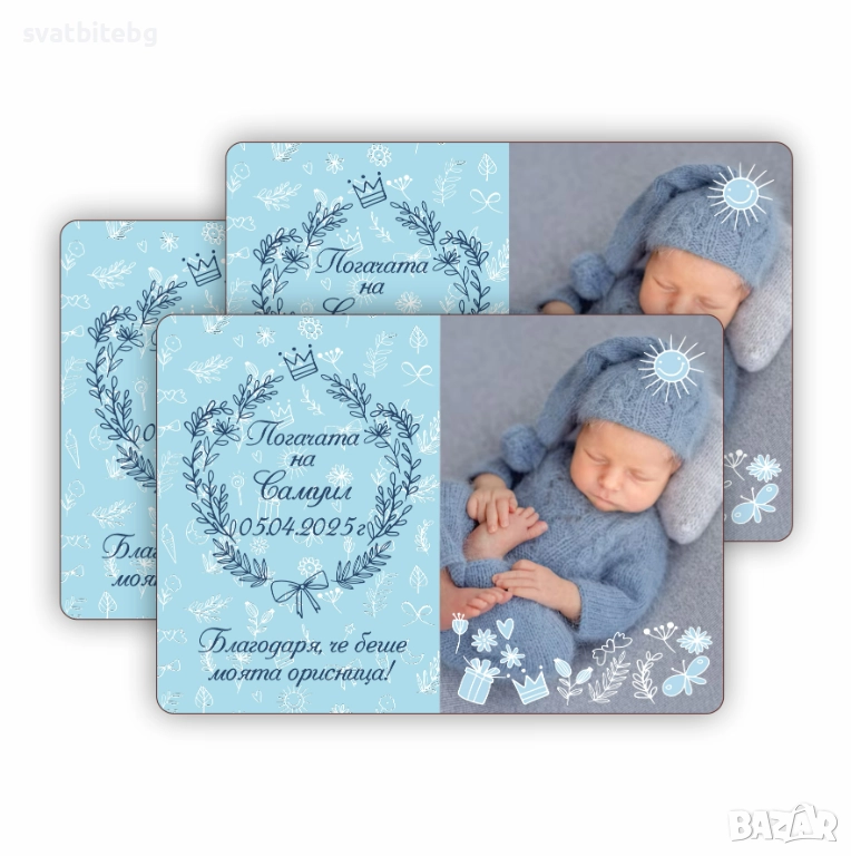 Подаръчета за Погача Магнитчета със Снимка за Погача Карти за Наричане → Обява 52461633