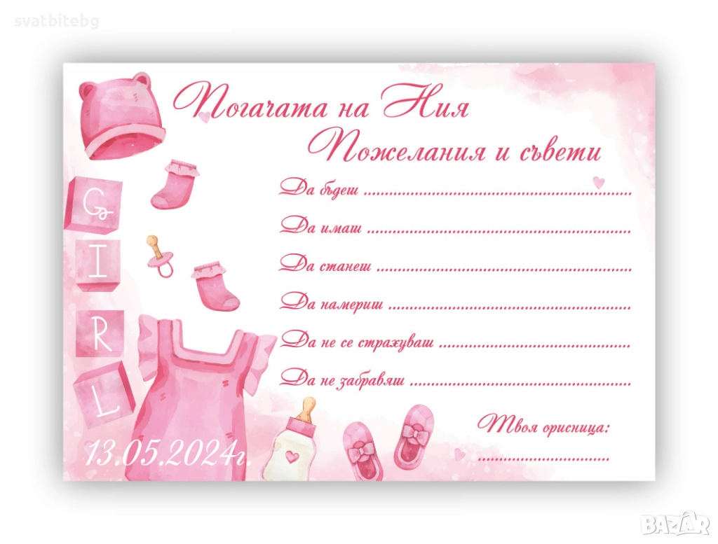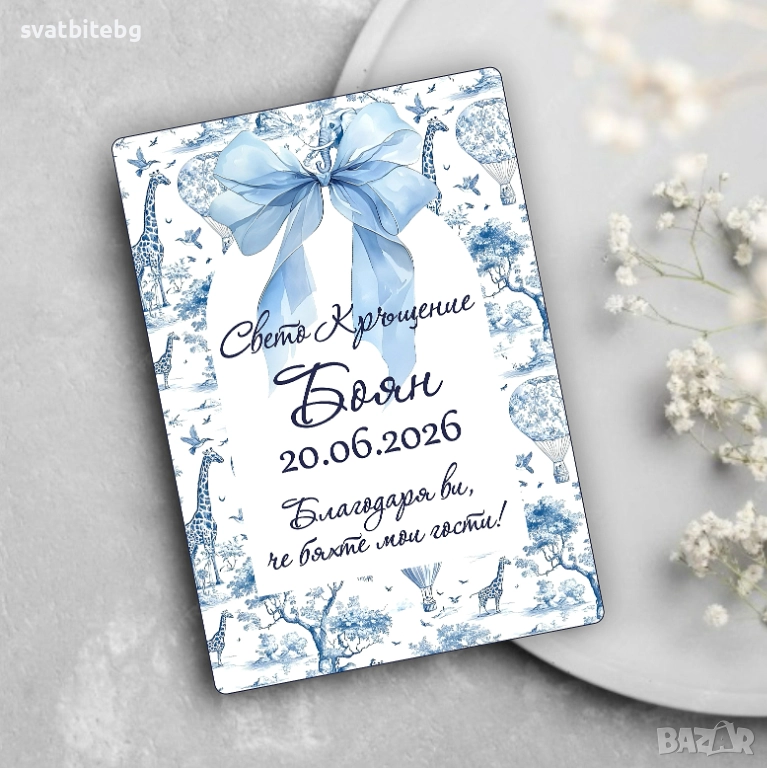 Карти за Наричане, Подаръчета и Покани за Погача – Изработка по ваш дизайн!