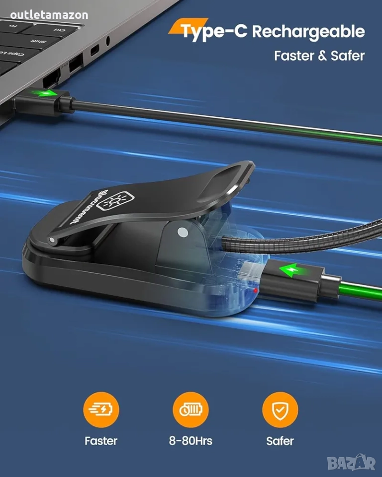 Лампа за четене в леглото, USB-C презареждаща се лампа за четене.