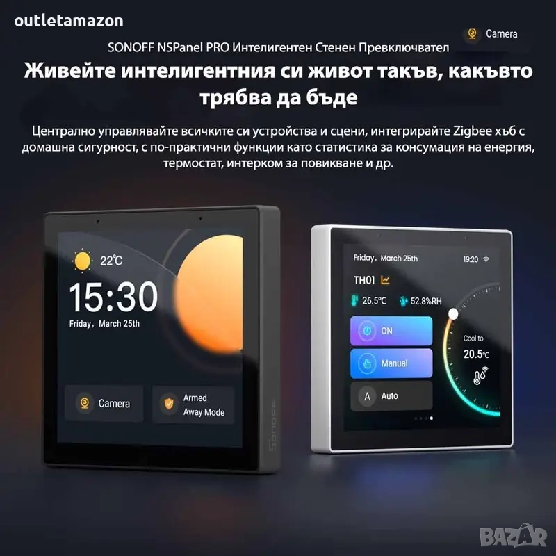 – NSPanel Pro може да се използва като дисплей и поддържа добавяне на камери за наблюдение на живо. Преглед на мониторинга в реално време на хола, гаража, спалнята и т.н. на панела по всяко време.