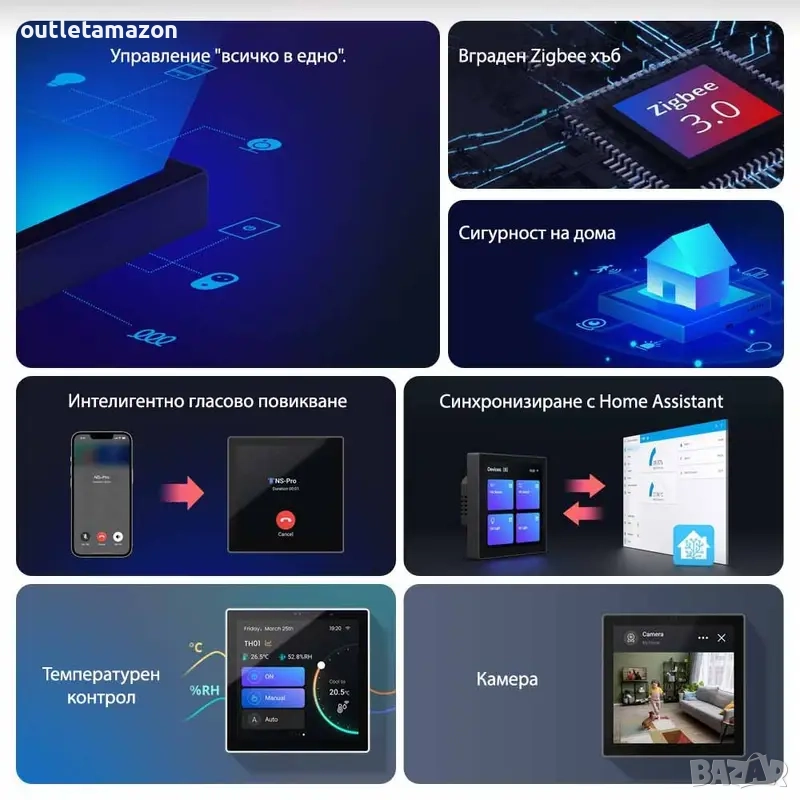 – SONOFF NSPanel Pro е интелигентен домашен контролен панел. Вашите интелигентни светлини, превключватели, нагреватели, охладители, завеси и всички ваши интелигентни устройства могат да бъдат контролирани. Неограничен брой контролни устройства, всички в един панел.