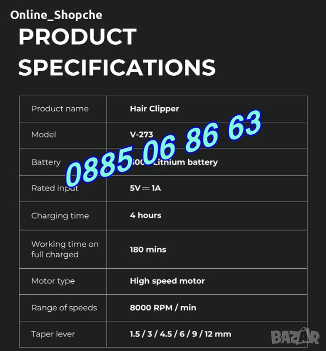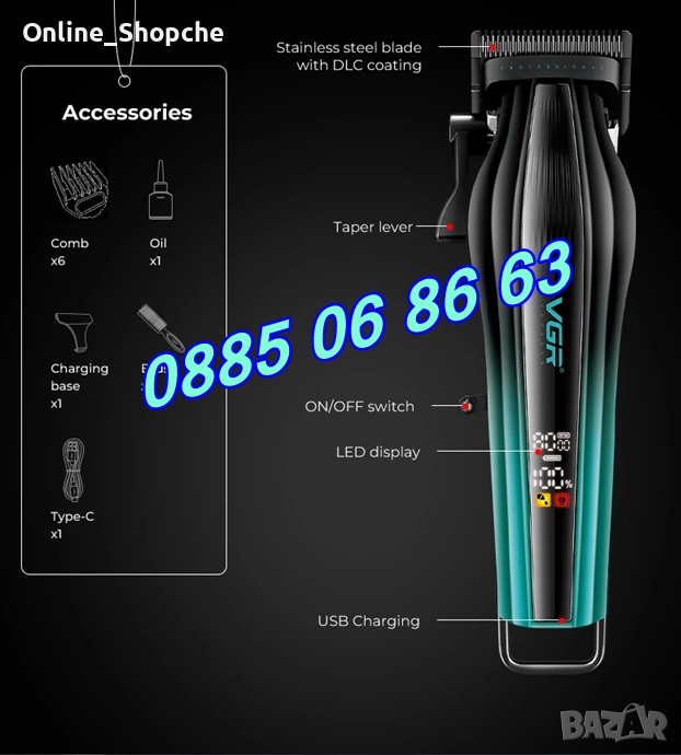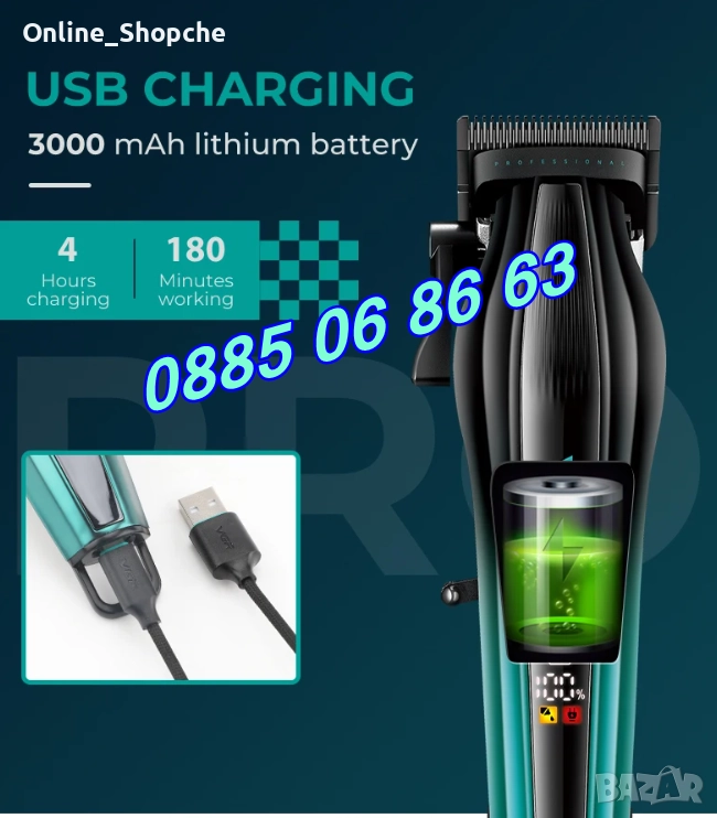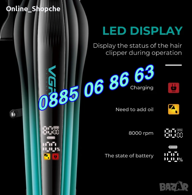 Безжична машинка за подстригване VGR 273, машинка за коса