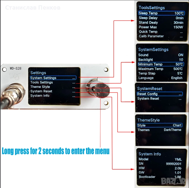 Универсално DC 12-24V, 2.0-инчов цветен екран, нов потребителски интерфейс, плавна работа, показване на температурната крива на мощността в реално време, PID температурен контрол по време на целия процес.