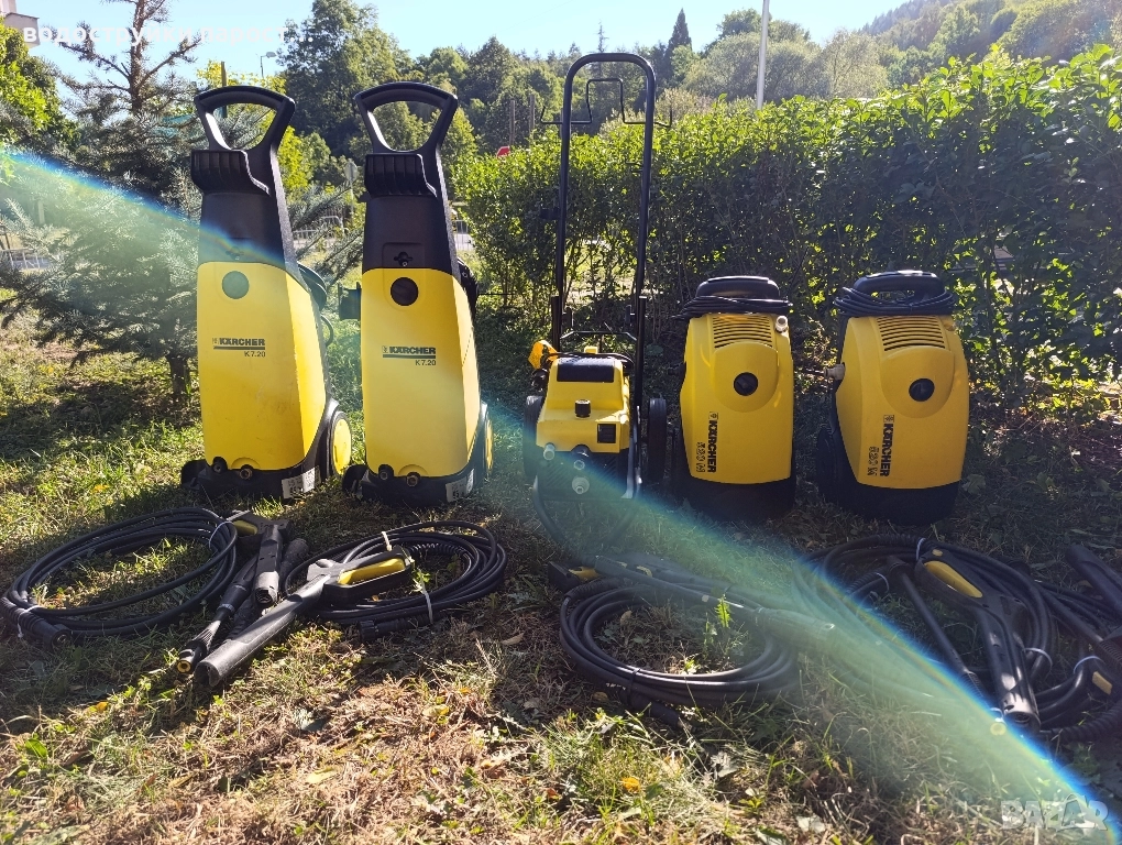 Здравейте, машините са внос от Германия 100% работещи и минали през сервиз. продавам една от най-популярните и надеждни водоструйки - Karcher K7.20 с месингова глава. Оборудването е напълно функционално. В много добро техническо и визуално състояние, без никакви дефекти. 100% рециклирана. Технически характеристики: Захранване - 230 V. Работно налягане: 150 бара. Капацитет на помпата - 550 (л/ч). Мотор - 3,0 kW. Месингова глава. Цена 450лв. Здравейте, продавам водоструйки Karcher K 520M в много добро състояние.100% Внос от Германия!!! Всичко е комплектовано: - Водоструйка - Турбо тръба - Маркуч за високо налягане.Karcher K 510 230V дебит на водата 8.3 л/мин 120-130 бара максимална температура 60 градуса алуминиева помпа Варю дюза - нова и регулируема - употребявана възможност за свързване на химикали сменени клапани и уплътнения 100% 1аботеща и рециклирана. Цена 180лв