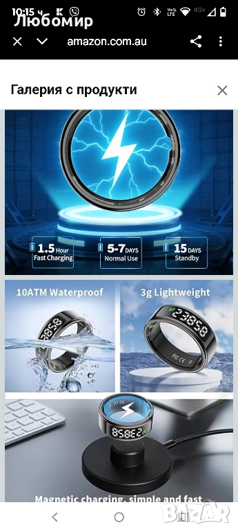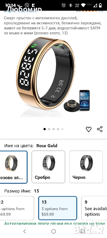Смарт пръстен с интелигентен дисплей, проследяване на активността, безжично зареждане 13