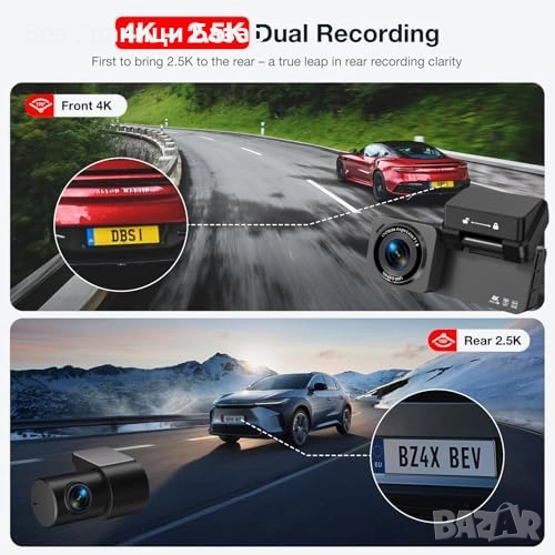 Нова 4K предна и 2.5K задна камера за кола, G-сензор, паркинг режим