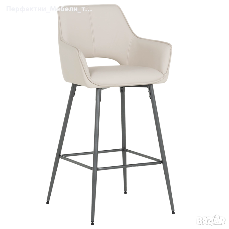 Бар столът със златни крака и крем дамаска е с цена за брой 198,00 лв с ДДС. Моделът с еко кожа в сива или крем цвят на кожата и сиви крака е с цена за брой 210,00 лв с ДДС.