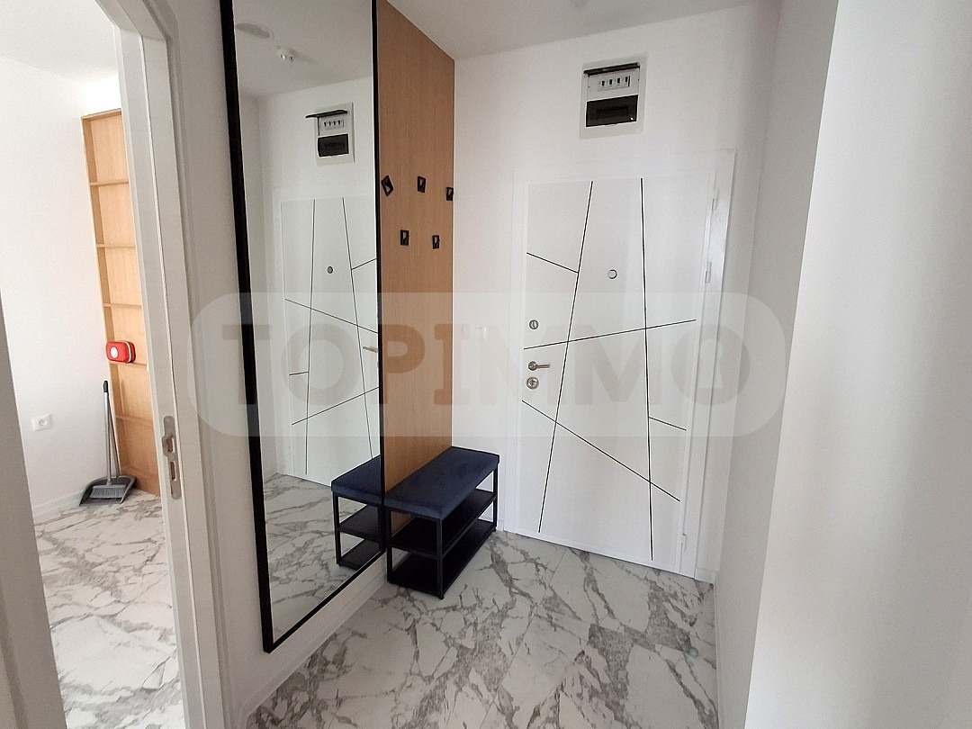 Апартаментът е разположен на седми етаж и предлага следното разпределение и характеристики: