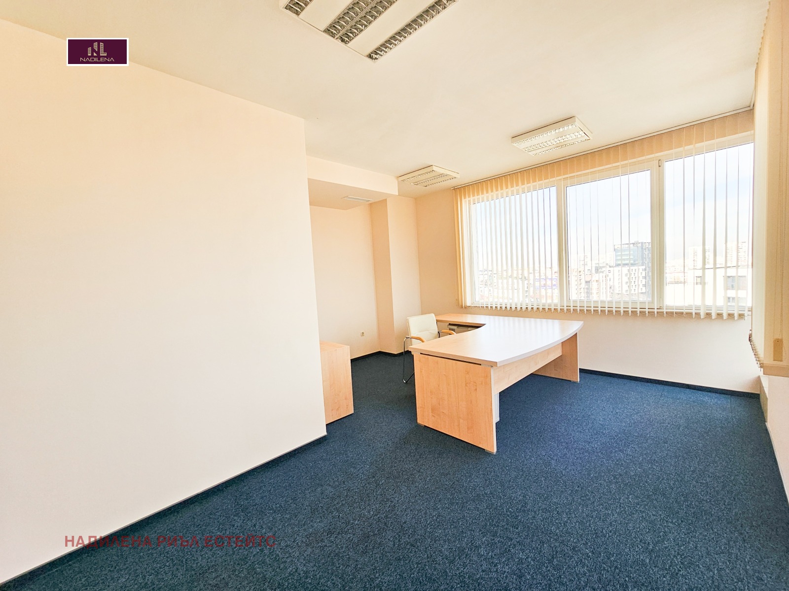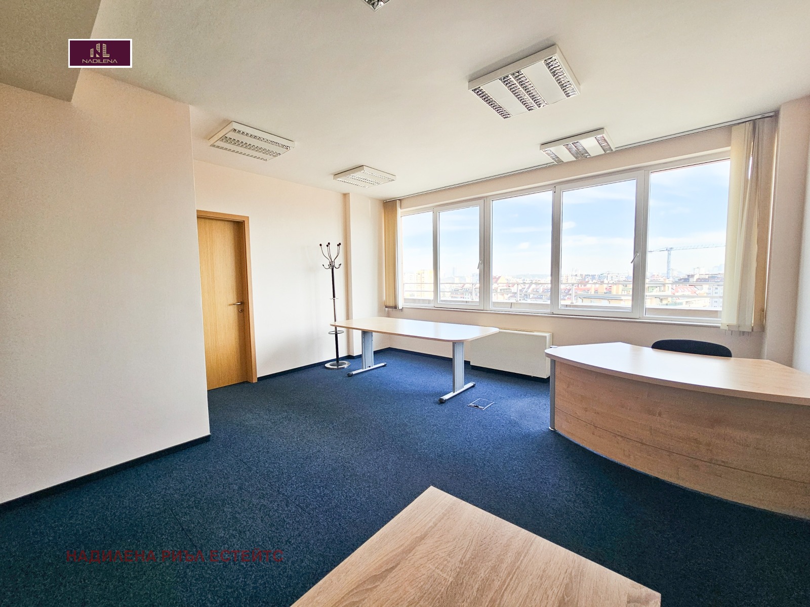 кв. Манастирски ливади, бул.'България', комуникативно място, в близост до МОЛ България, с бърза връзка към центъра на София и околовръстен път, под наем представителен офис в модерна офисна сграда клас А, с площ от 160кв.м., ет.7/от 8, с асансьор, отопление-газ, контролиран достъп, 24 часова охрана, 2 асансьора. Има централна климатизация, отоплението е на газ-с индивидуално отчитане. Разпределение-приемна, заседателна зала, 2 кабинета, санитарен възел, отделно оборудвана кухня и голяма тераса. Сградата е с 24-часова охрана, видеонаблюдение, централна климатизация. Oтоплението и охлаждането е чрез система VRF с индивидуално отчитане. Офисът е готов за нанасяне, настилката в помещенията е офисен мокет. В допълнение към наемната цена се заплаща такса за поддръжка на общите части в размер на 1EUR/без ДДС. Собственост е на юридическо лице и върху наемната цена се начислява ДДС. Възможност да се наемат 2 подземни паркоместа-всяко по 150EUR/без ДДС. За въпроси и огледи се обръщайте към Надя Антова-088/9999 413, 0888/788 420, Васил-0899/18 35 80, Елена-0898/60 55 33