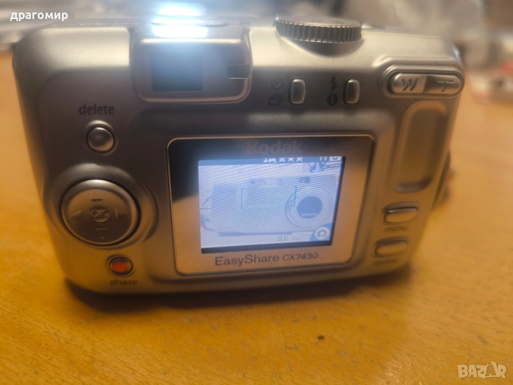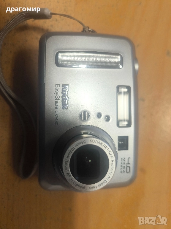 продавам компактен цифров фотоапарат, работи, Kodak Easy Share CX7430, много запазен,има карта памет, работи с две батерии АА по 1, 5 v, имам още много други фотоапарати, камери, обективи, чанти, светкавици, батерии, зарядни устройства, касети, филтри, ремъци, ленти, при закупуване на повече неща отстъпка