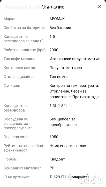 Машина за еспресо кафе , снимка 1 - Кафемашини - 52463728 Машина за еспресо кафе , снимка 2 - Кафемашини - 52463728 Машина за еспресо кафе , снимка 3 - Кафемашини - 52463728 Машина за еспресо кафе , снимка 4 - Кафемашини - 52463728 Машина за еспресо кафе , снимка 5 - Кафемашини - 52463728 Машина за еспресо кафе , снимка 6 - Кафемашини - 52463728 Машина за еспресо кафе , снимка 7 - Кафемашини - 52463728 Машина за еспресо кафе , снимка 8 - Кафемашини - 52463728 1/8