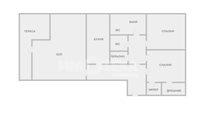 -Огромен хол, разделен на кътове с излаз на тераса