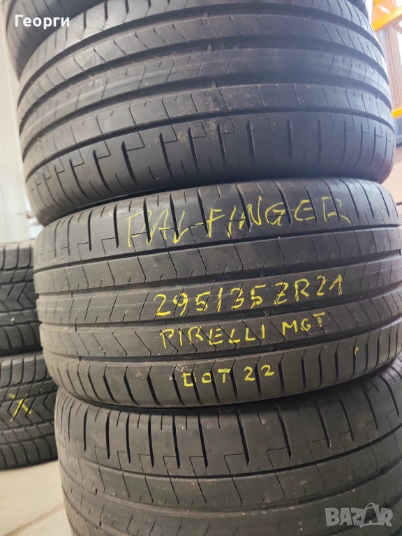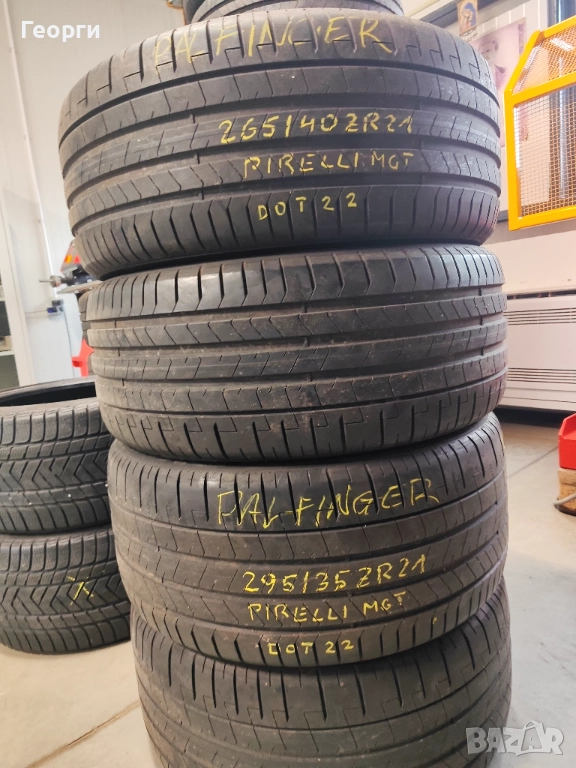 4бр.Pirelli спорт пакет,295/35/21-265/40/21, ДОТ 2222/1122, 6.5mm/6.4mm грайфер. Гумите са перфектни, без забележки, проверени са машинно за кривини, балони! Разполагаме с всякакъв размер нова и втора употреба гуми от 14-22 цола за автомобил, джип и бус.