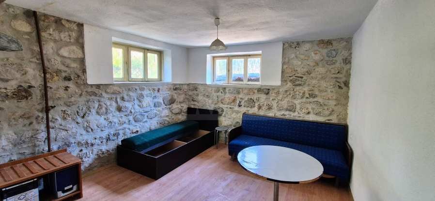 - Първи етаж (частично ремонтиран): входно антре, две помещения кухня с кът за хранене и дневна, санитарен възел. Запазена е автентичната каменна зидария.
