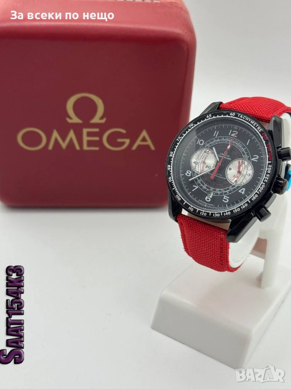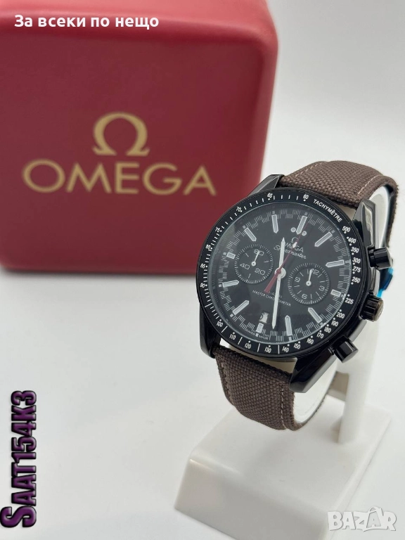 Стилен мъжки хронограф, вдъхновен от емблематичния дизайн на Omega Speedmaster. Моделът разполага с черен корпус и циферблат с висока четливост, комбинирани с функционален тахиметричен безел. Тройните субдайъли дават на часовника динамична спортна визия, а синята текстилна каишка осигурява комфорт и добра устойчивост при ежедневно носене. Часовникът е подходящ за спортно-елегантен стил и е отличен избор за всекидневна употреба.