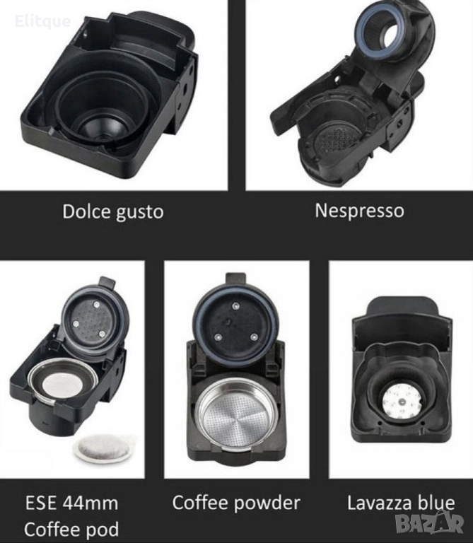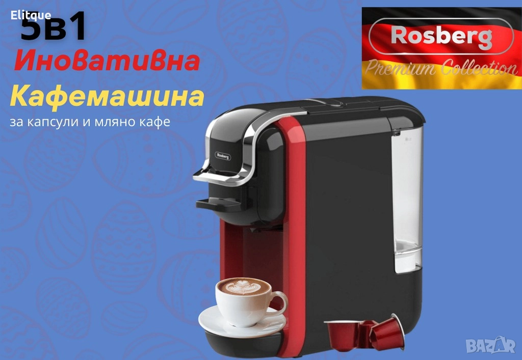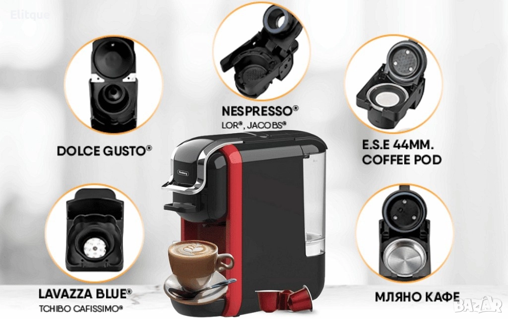 Nespresso), Лаваца блу, Мляно кафе, ESE 44 мм. Coffee pod; Защита от прегряване; Захранване: 220-240V; Цвят: Черна с червено; Гаранция: 2 години.