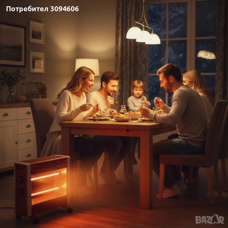 Кварцов отоплител 1500W с 2 степени и мобилни колелца – бързо и безопасно затопляне