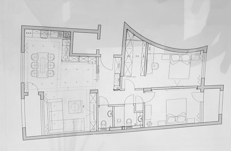 Апартаментът е в отлично състояние и готов за нанасяне. Проектиран е със стил и внимание към детайла. Има възможност за преустройство в четиристаен.