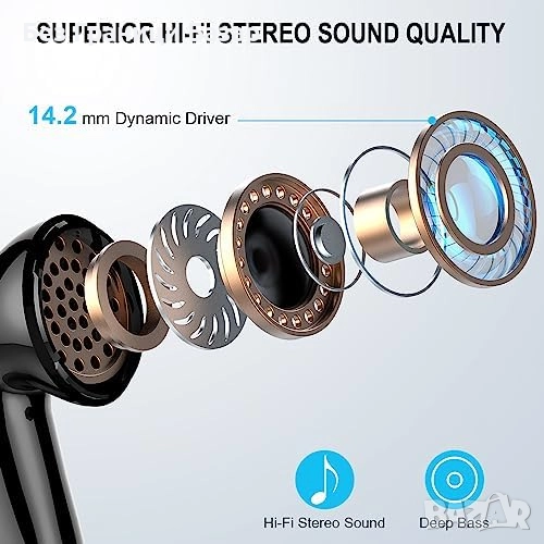 14.2 mm драйвери с мощен бас и чисти обаждания с ENC микрофон