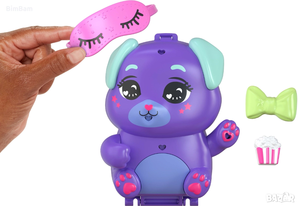 Комплектът се състои от кутия във формата на очарователно кученце, което децата могат да облекат както пожелаят чрез включените аксесоари, 3 фигурки - малка кукла и две кученца, както и различни допълнителни аксесоари за игра. Когато отворят кутията малчуганите ще могат да се насладят на невероятна игра с двуетажното легло за кукли и домашни любимци. Ще могат да се забавляват в кухнята, където фурната и хладилника се отварят, разкривайки закуски, а всекидневната е пълна с игри и развлечения. Този комплект ще вдъхнови детското въображение и за да може играта да не спира, децата могат да го вземат навсякъде със себе си.